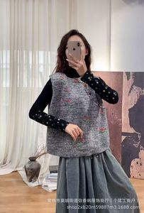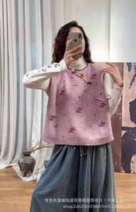 圆领国风盘扣针织马甲背心女2025早秋新款宽松外穿新中式毛衣马夹