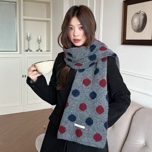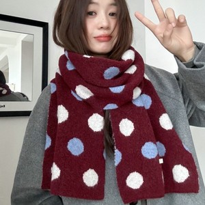 温暖波点撞色~秋冬氛围感针织围巾女保暖加厚百搭披肩围脖ins风潮