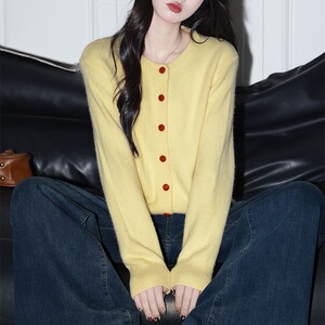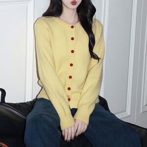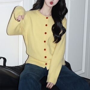 奶呼呼黄色软糯针织开衫女款2025秋冬季新款宽松毛衣保暖外套上衣