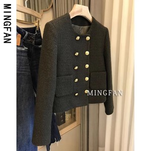 2025年早秋季女装新款黑色小香风西装女士小短款百搭毛呢外套上衣