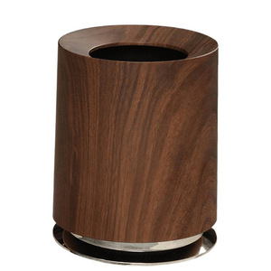胡桃木纹垃圾桶家用客厅卧室大容量轻奢创意商用民宿中古风纸篓桶