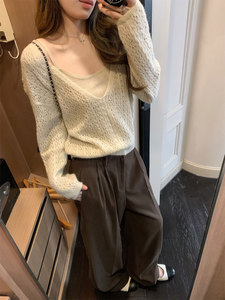 Hhyii 约克郡黄昏 温柔风镂空针织上衣罩衫&吊带背心两件套