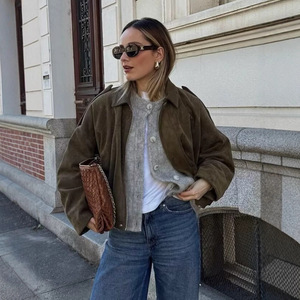 2025新款欧美跨境女装时尚绒面质感效果飞行员夹克外套上衣