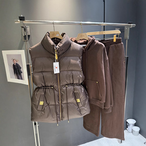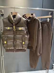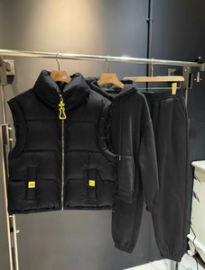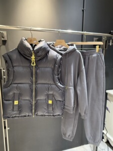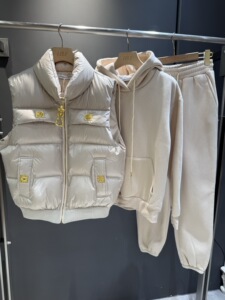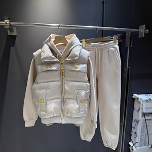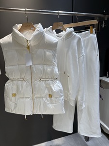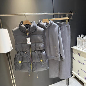 mm家25ss秋冬新款异型扣装饰棉马甲+卫衣三件套立领套装