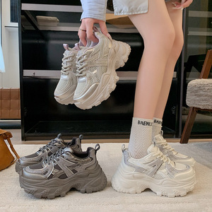 真皮水钻老爹鞋女重工2025秋季新款网面透气运动鞋网红休闲女鞋