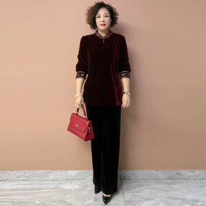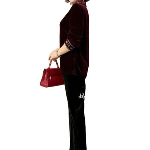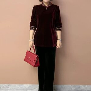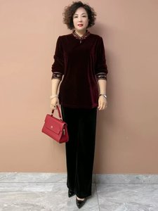 2025年秋季新款阔太太时尚重工刺绣丝绒长袖中老年妈妈休闲上衣