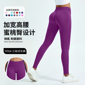 亚马逊36色三段低腰无缝瑜伽裤紧身提臀运动长裤长裤跑步健身瑜伽
