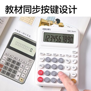 得力TE66计算器小学生初学课堂用人教版课本同步学习计算机批发
