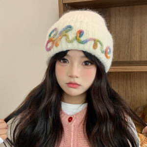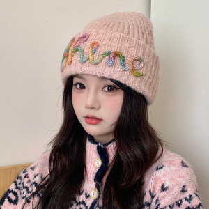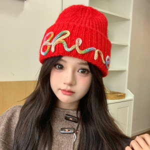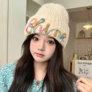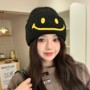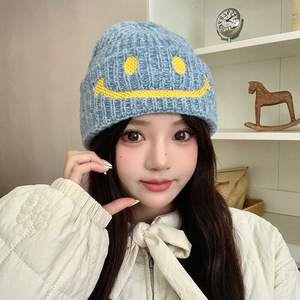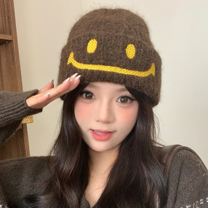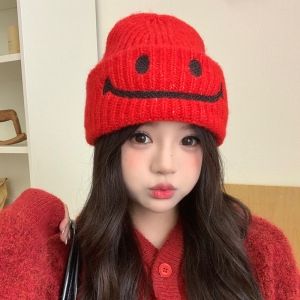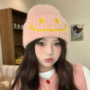 日系笑脸针织帽秋冬保暖护耳毛线帽大头围户外防风防寒冷帽显脸小