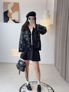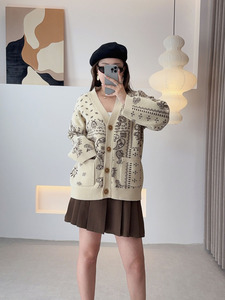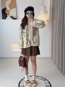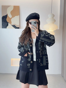 子元2025秋季新款大码女装软糯毛衣200斤复古提花V领针织开衫F610