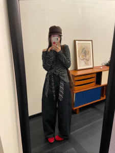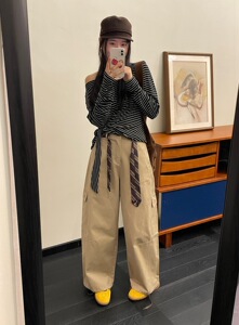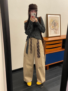 秋季韩系复古大口袋工装裤女阔腿裤显瘦休闲百搭直筒裤长裤ZA