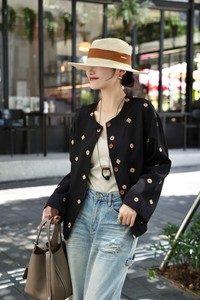 南油2025新品新中式重工刺绣人丝龟裂纹香云纱开襟外套(有内衬)