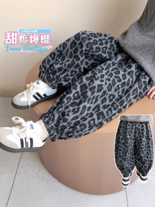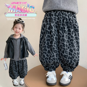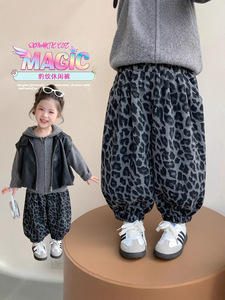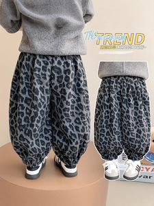 儿童裤子2025秋季新款韩系慵懒灰色豹纹灯笼裤中小童休闲裤子显瘦