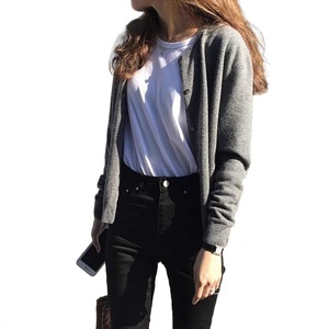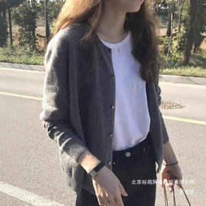 厂家直销秋季针织衫毛衣开衫女大码胖mm微胖灰色显瘦圆领外搭上衣