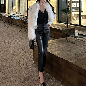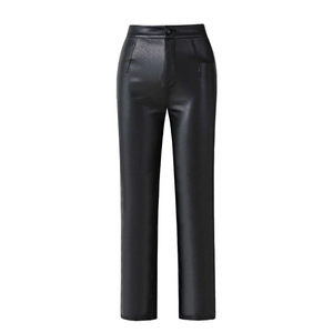 PU皮裤女2025秋冬新款高腰修身直筒裤小个子显瘦休闲九分烟管裤子