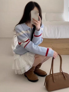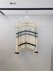 现 pouch半拉链条纹polo针织衫韩国东大门女装 100羊毛韩系毛衣