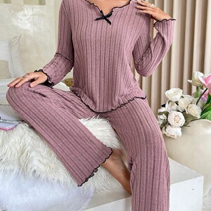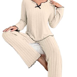 2025新款欧美款跨境亚马逊爆款黑边绞边休闲磨毛家居服秋季套装睡