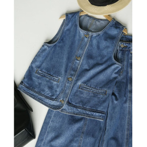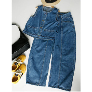 2025新款酷飒牛仔马甲套装休闲显瘦纯色夏季新款韩版牛仔裤两件套