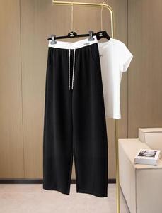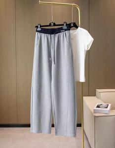 字母撞色腰香蕉裤时尚拼色慵懒风宽松镰刀裤女百搭高腰垂感休闲裤