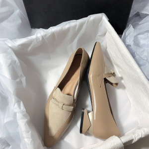 英伦风小皮鞋法式拼接粗跟尖头单鞋中跟优雅乐福鞋