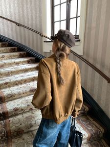 美拉德复古仿麂皮绒长袖外套女2025秋季新款宽松翻领休闲机车服女