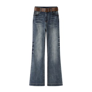 2025冬季新品女装设计师款复古竹节纹微喇牛仔裤休闲裤RL91302433