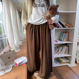 云朵裤秋冬软糯阔腿裤女垂坠感德绒超柔高腰显瘦宽松直筒休闲裤女