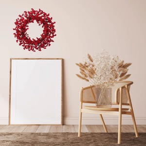 新款仿真红果花环发财果冬青果浆果花圈圣诞挂饰跨境热卖圣诞装饰