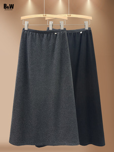 2025秋冬新款高腰显瘦后开叉半身裙纯色糯米绒中长款包臀半裙