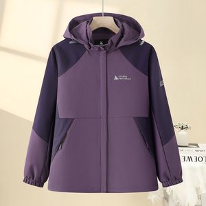2025秋季新款时尚休闲宽松连帽外套冲锋衣大码休闲中老年外套