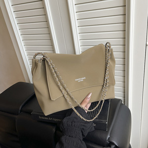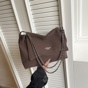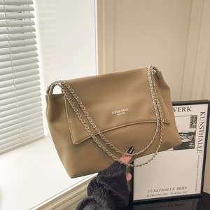 软皮质感链条托特包包女大容量通勤百搭单肩包2025新款时尚腋下包