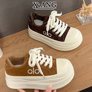 真皮板鞋厚底增高小白鞋子女鞋休闲运动鞋女款加绒保暖棉鞋面包鞋