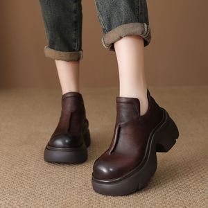 头层牛皮复古女靴2025秋冬新款百搭短靴女手工缝制防滑底马丁靴