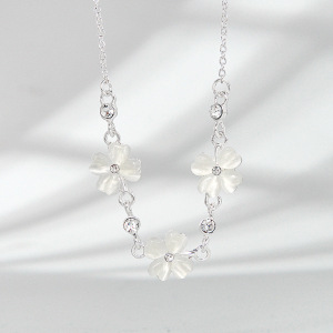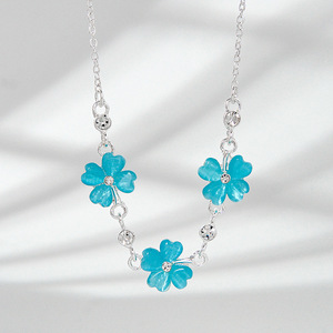 项链:抽拉式3个蓝色猫眼四叶草项链