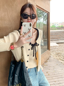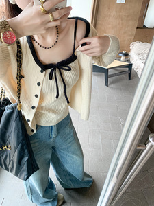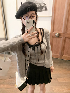 韩系针织开衫配吊带女早秋季新款软糯毛衣外套外搭上衣氛围感穿搭