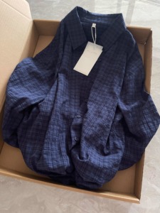 法式复古藏蓝色格子衬衫女2025秋季宽松慵懒风超好看长袖衬衣上衣