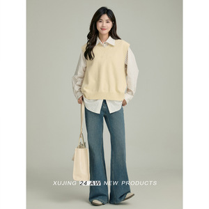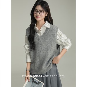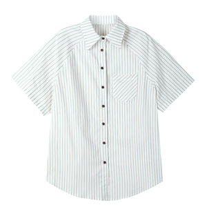 叙境白色竖条纹衬衫上衣长袖女士秋季新款通勤宽松内搭休闲衬衣