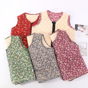 时尚妈妈装碎花休闲百搭坎肩奶奶加绒马甲女加厚保暖背心防寒保暖
