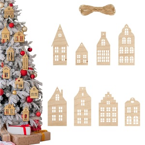 跨境新款圣诞树节日圣诞树装饰可绘制镂空木质房子