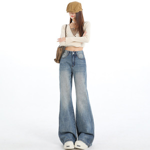 复古高腰提臀喇叭裤宽松阔腿裤休闲百搭垂感拖地牛仔裤女