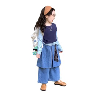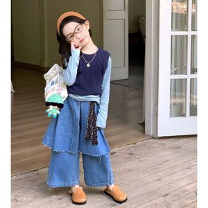女童套装秋季背心打底衫两件套儿童洋气时髦牛仔裙裤三件套