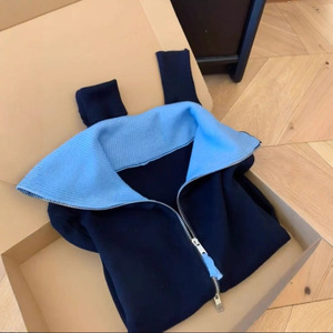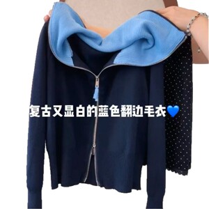 自留款推荐~海军领拼色双拉链针织开衫女秋冬新款设计感百搭毛衣