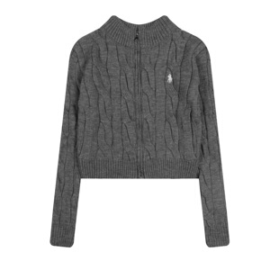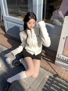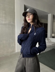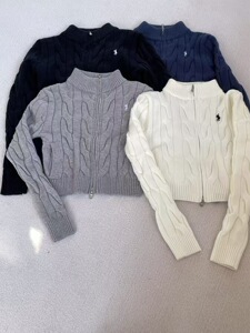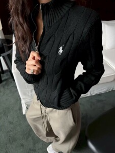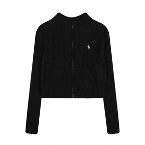 现货RL拉夫刺绣小马标双拉链立领毛衣针织开衫女百搭时尚短款上衣