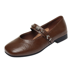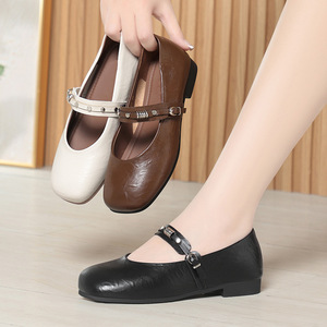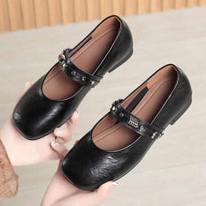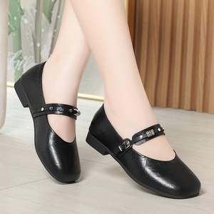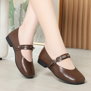 软底舒适百搭妈妈鞋子浅口单鞋女秋季玛丽珍皮鞋平底女鞋一件代发