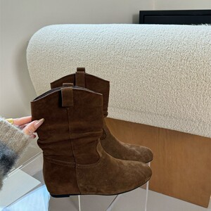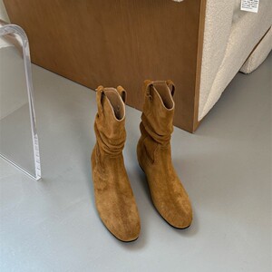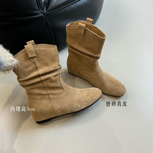 H20-1套筒秋冬勃肯靴英伦磨砂皮内增高皱皱圆头短靴阿里贵妃2025