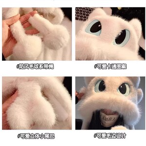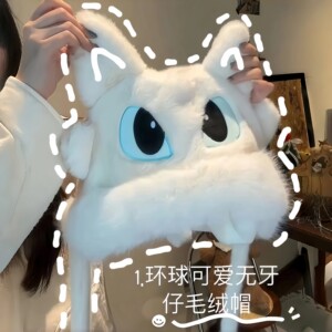 可爱卡通无牙仔毛绒帽子冬季保暖防寒加绒加厚骑车护耳帽雷锋帽女
