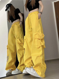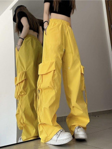 定制跨境美式潮流复古速干工装休闲裤女夏季高腰直筒宽松阔腿长裤