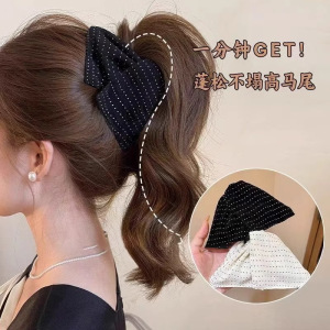 法式赫本风布艺波点抓夹时尚气质后脑勺发夹盘发鲨鱼夹子韩国发饰