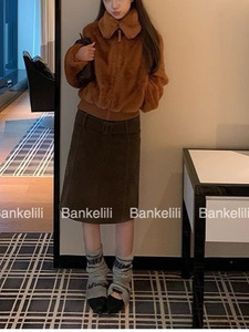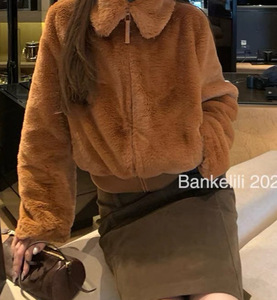 板栗可可Bankelili 独!ann酱同款环葆立领保暖好穿毛毛外套女