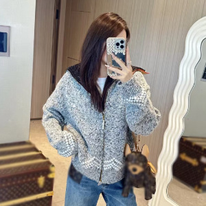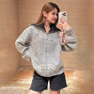 秋冬新品帆船垂钓联名款翻领撞色拉链外套针织衫时尚宽松毛衣外套